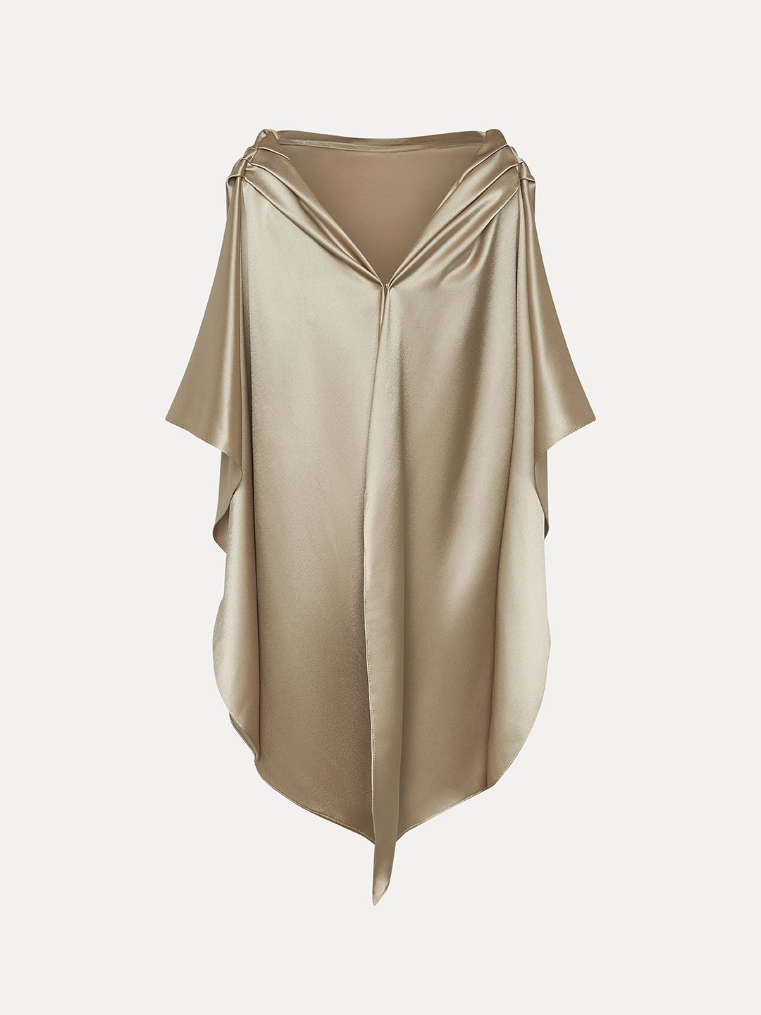 Este top de triacetato marrón es una prenda única y elegante que combina la comodidad de un top (parte interna) con la sofisticación de una capa. El diseño de la capa cosida en la parte superior añade un toque de drama y movimiento a la prenda, mientras que el cierre trasero y el drapeado en los hombros le dan un toque de feminidad
